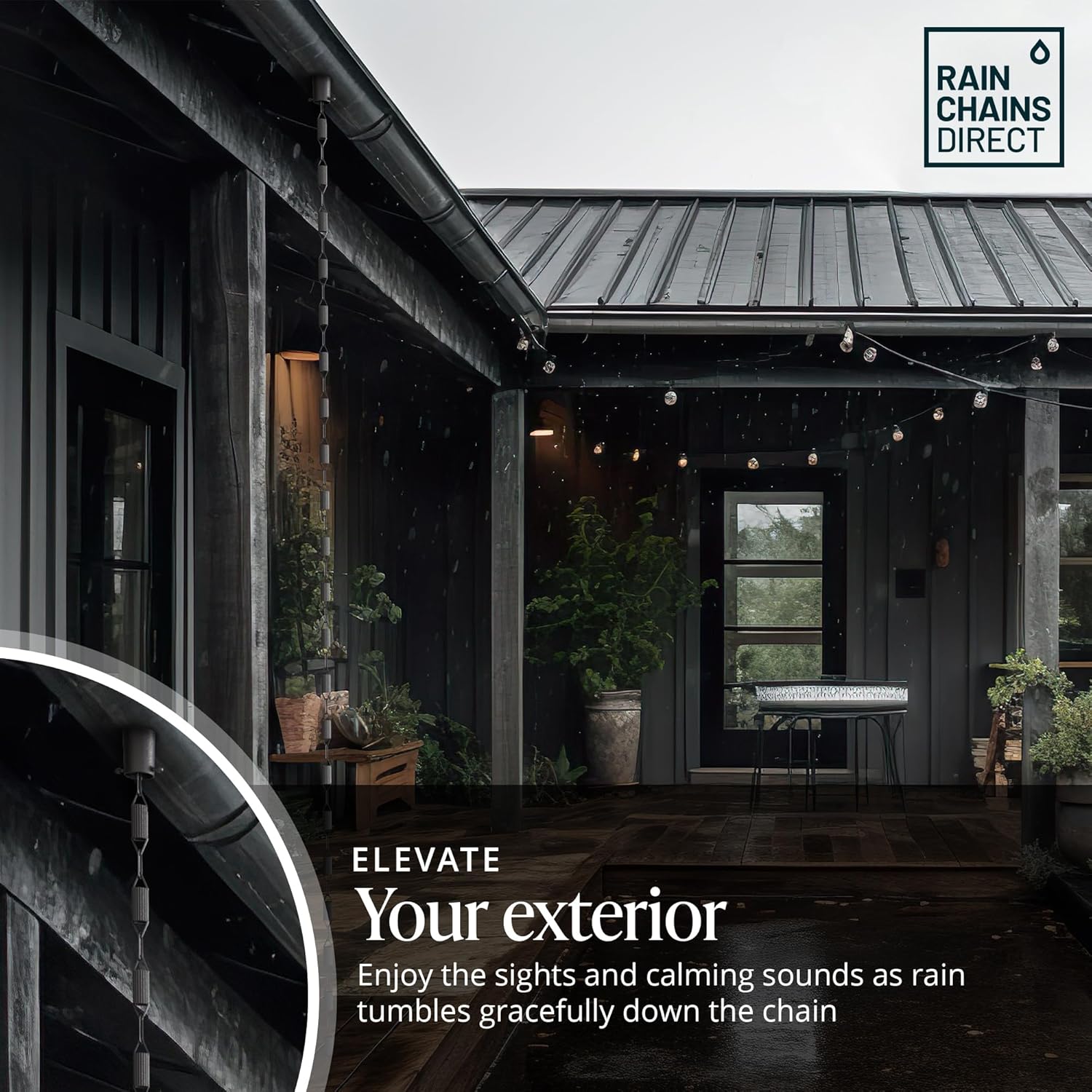 Exceptional Durability – Crafted from milled aluminum and finished with a durable black powder-coating, our rain chains for gutters are meticulously hand-assembled, promising a lifetime of beauty and resilience.