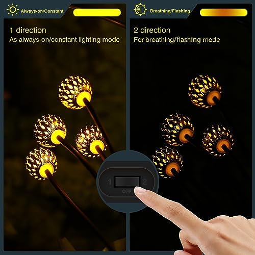 ☽☾【Upgraded Solar Spot Lights Outdoor Swing Lights】The pack comes with 10 golden metal Moroccan style decor lights which can decorate your place day and night. It has 2 lighting modes: ALWAYS ON and FLASH modes. IP67 weather-proof with high efficiency solar panels: 6-8 hours for fully charged under the sunshine. It can glow 8-12 hours in dark.
