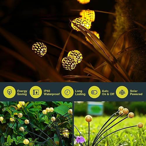 【4 Pack of 40 LED】 LEDOSAKO Solar Garden Lights Outdoor -Golden Metal Moroccan Solar Firefly Lights, Solar Lights Outdoor Waterproof, Yard Patio Pathway Decoration Lights, Solar Lights for Outside