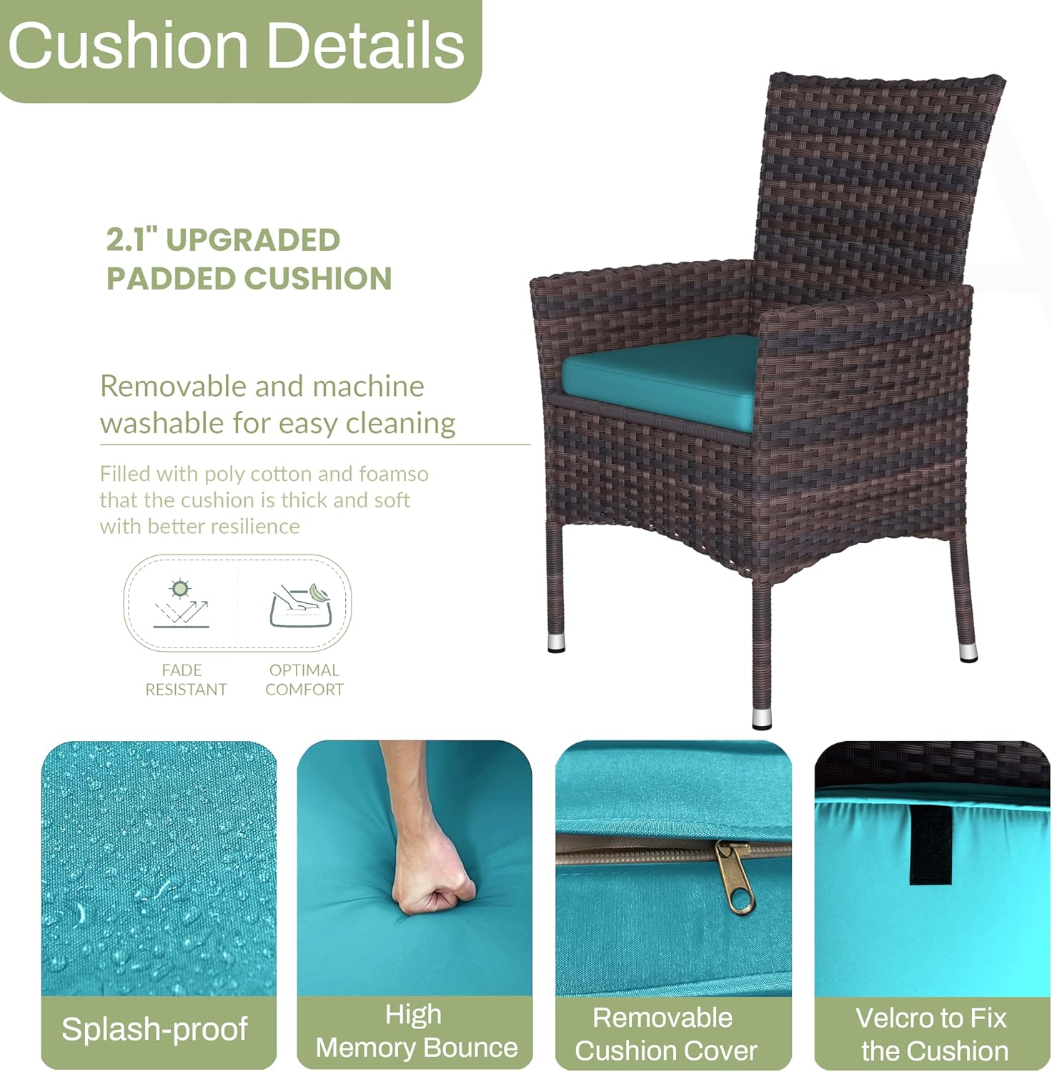 Our dining table has a 1.5″ umbrella hole in the center, you can add a parasol and enjoy summertime with your family. The patio dining set complements any backyard setting and is perfect for outdoor patios, pools, lawns and gardens.