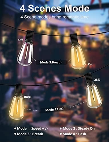 【Auto Turn on/off】Outdoor solar string lights has built-in light sensor which control the light automatically to turns on at night and off at dawn. –Unlike other solar string lights, our item provide a remote control, you can adjust the brightness or 4 modes without going outdoor( In 7th Image).