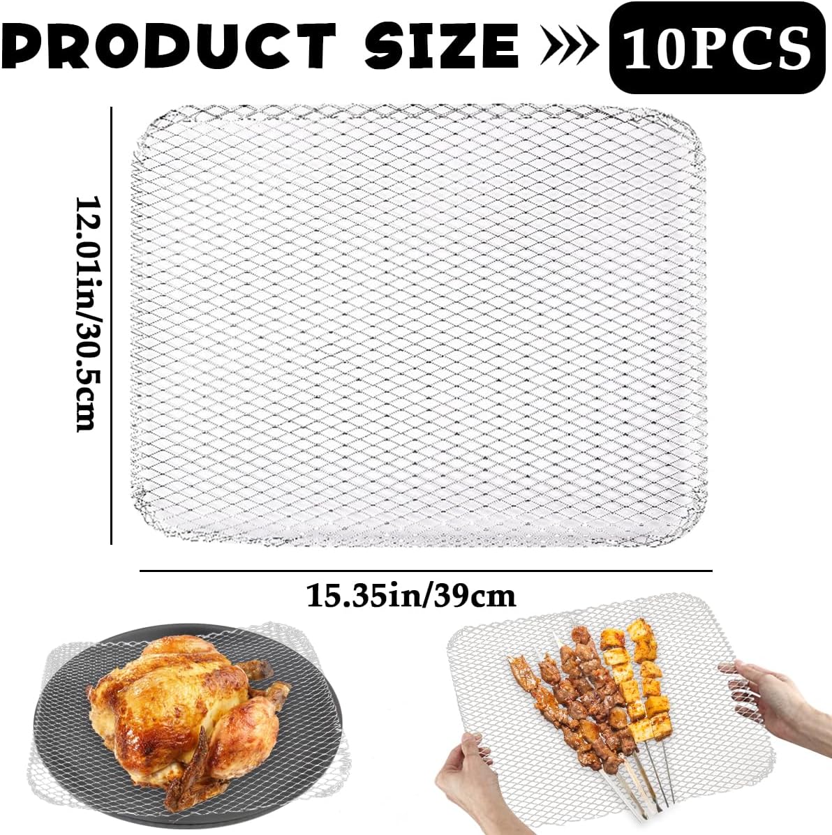 Pack Quantity: A box of 10 grill mats which feature disposable, clean and hygienic grill mats. Measuring 38.8 x 30.5 cm / 16 x 12 inches, the grill mats are used for outdoor cooking and can also be used as cooling and baking racks. The mesh design makes grilled food more delicious because of better air circulation. (Note its size)