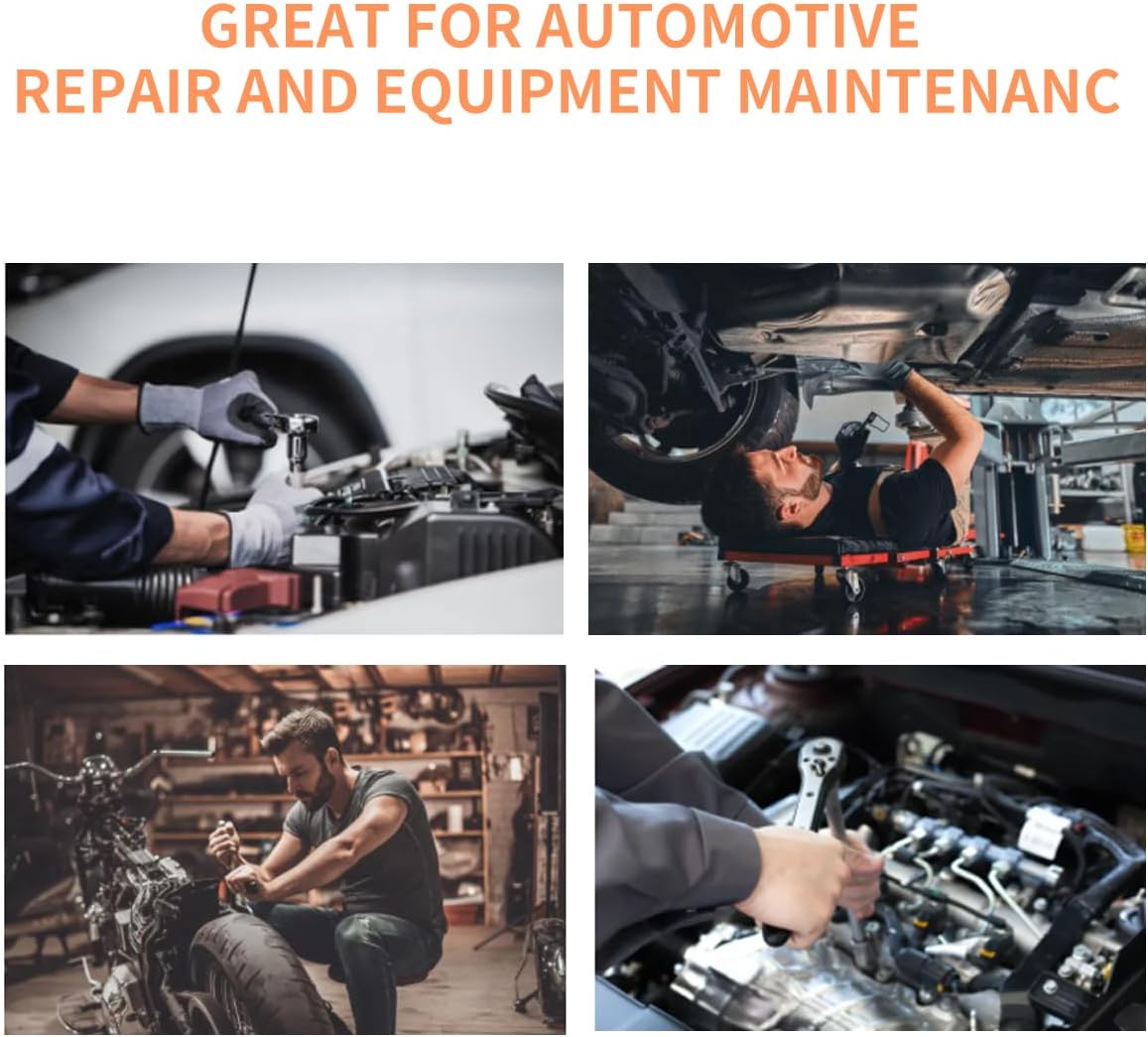 【HIGH QUALITY MATERIALS THAT LAST】: The socket sets are made of high quality Cr-V alloy steel, forged by heat treated chrome vanadium, which can withstand greater torsion while ensuring the durability and stability of the tool, so that your socket set will last for a long time and be your long-term reliable assistant. The surface is polished to effectively isolate air and resist oxidation, keeping it as new for years.