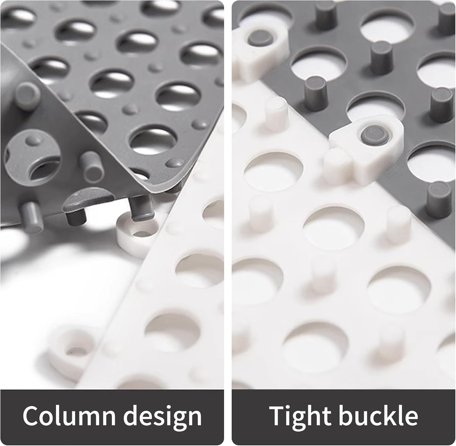 【Grey Floor Tiles with Drainage Holes】12”x12” (30*30 cm) and 1/3 inch in thickness. It also can be cut to fit any complex shape.interlocking drainage mats, waterproof and non-slip, perfect flooring tiles for indoor pool, shower, bathroom, laundry room, hot tub and locker room