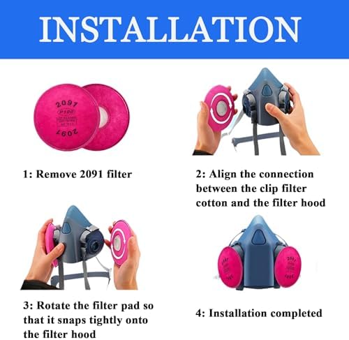 🏭【Replacement Time】The 2091 Filters filtration efficiency of particulate filter is at least 95%, when the filter cotton is dirty, broken, breathing resistance increases significantly, please replace the filter cotton immediately, according to the number of times the wearer uses and the type of contaminants to follow the replacement of the filter cotton. Typical use time is up to 40 hours. Package Includes 1×24 PCS (12pack)