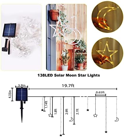 138 LED Ramadan Decorations Light Solar Moon Star Lights String Light Outdoor Waterproof Solar Powered Curtain Lights with 8 Modes Ramadan Hanging Decor for Patio (Warm White)