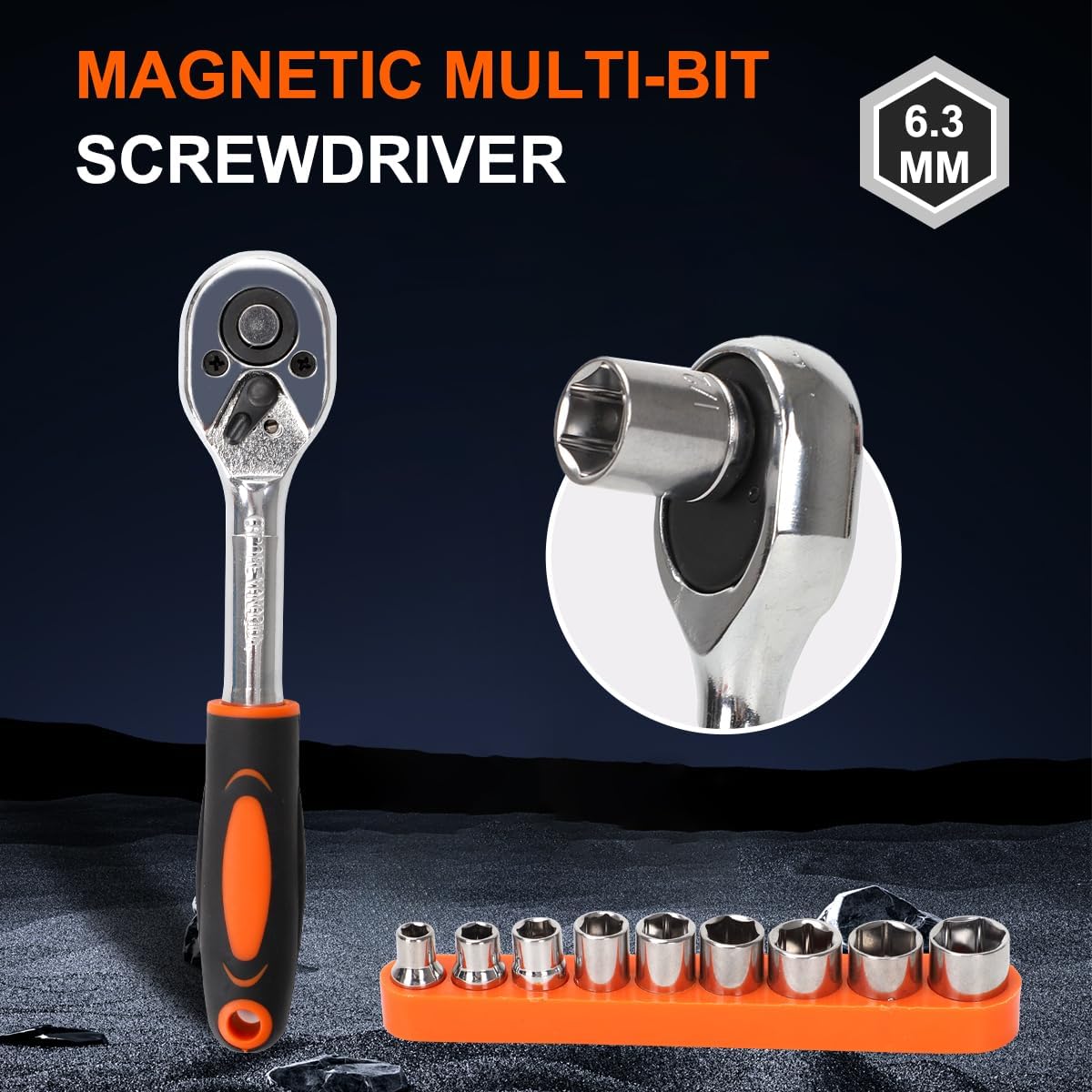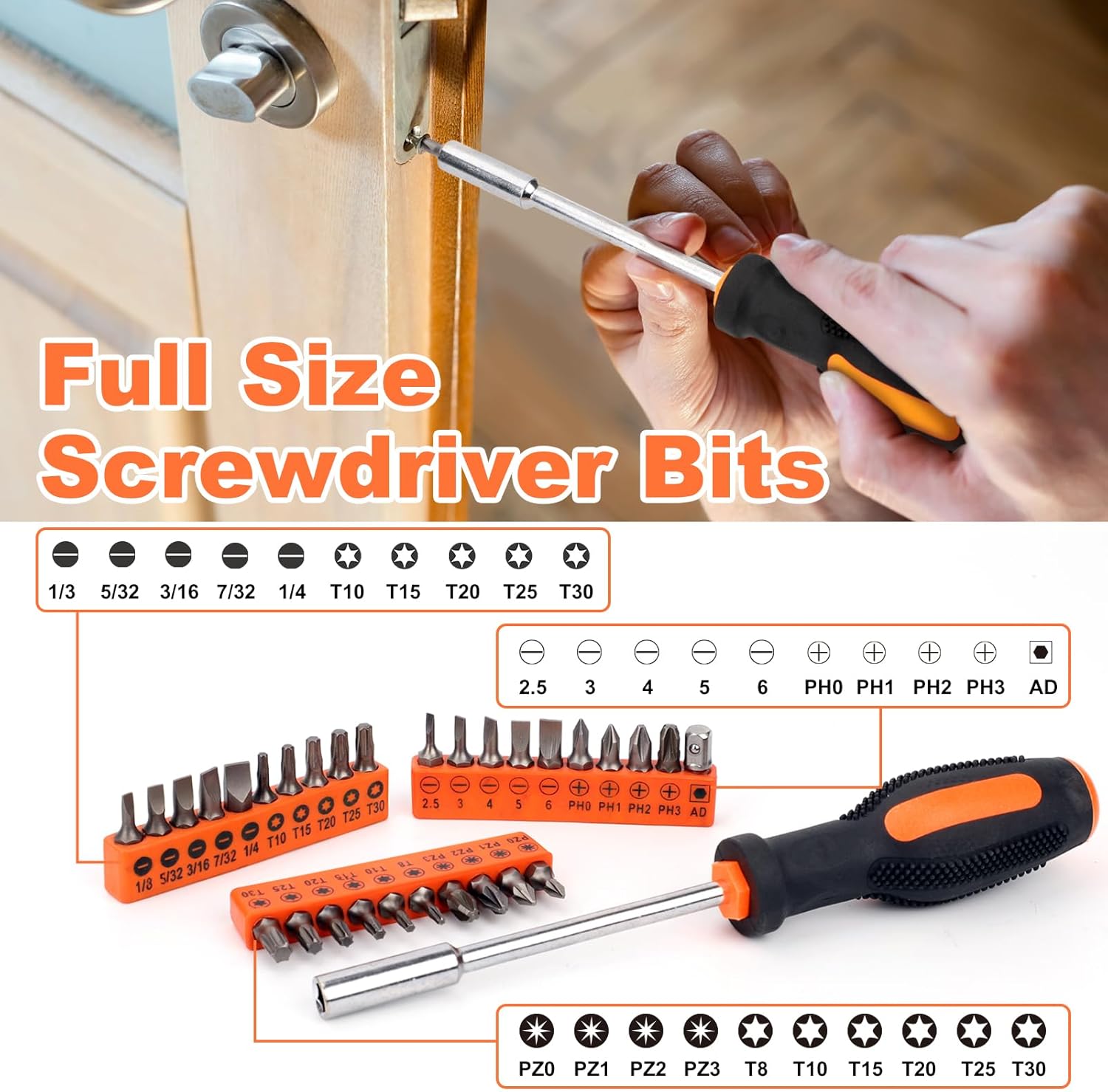 [Multipurpose Use] – This 144-pieces kit contains the basic tools needed for daily use and can be used for most small repairs around the house. A wide variety of wrenches, screwdriver bits, pliers, sockets and screwdrivers can meet your repair needs to the greatest extent possible. These versatile tools can handle all unexpected situations that come your way and save you precious time and effort.