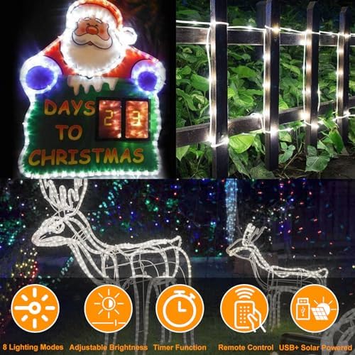 【8 LIGHTING MODES to Create Lots Fun】Gorgeous 8 lighting modes including combination, fireflies flashing, waves, fading, chasing/flashing, fading slowly, twinkle/flashing and steady on, which can create different atmospheres for your life. Flexible wires can easily build the shapes you want; wrap around tree trunks or gazebos; in the dark, the wire fades to invisible, leaving only the bright lights. This decorative solar rope string lights make your house and garden charming and romantic.