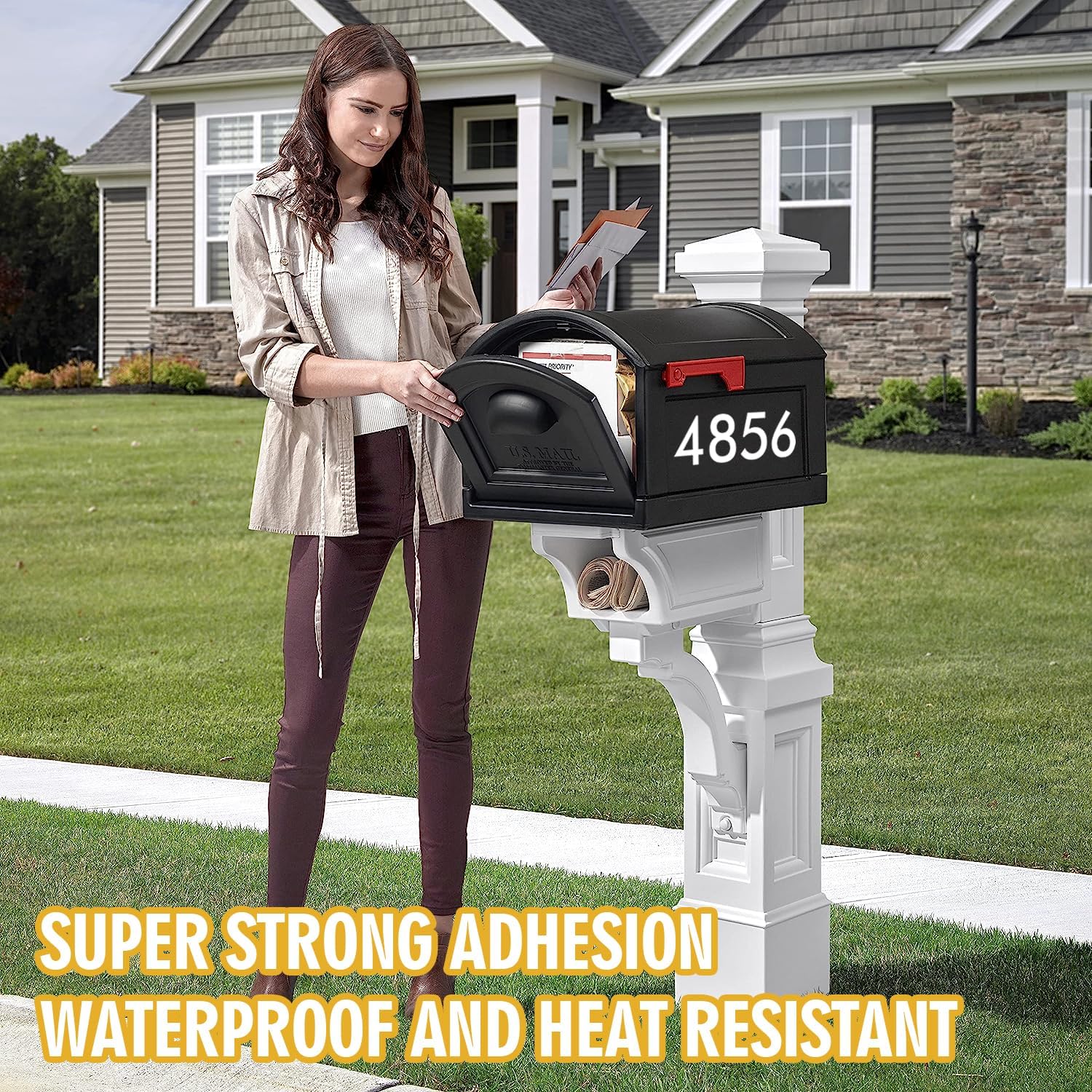 2 inch Reflective Mailbox Numbers for Outside Sticker, Modern Mailbox Number (0-9, 4 Sets) Premium Decal Die Cut and Pre-Spaced – for House, Trash Cans – Self Adhesive Numbers
