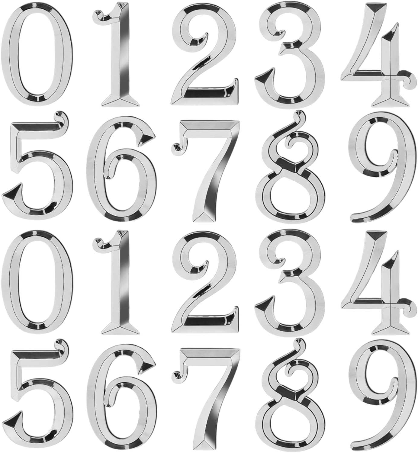 2 Sets House Mailbox Numbers for outside 0-9, 2.75 inch 3D Self Adhesive Street Address Door Numbers Signs for Apartment,Office,Cars,Mailboxes (Silver)