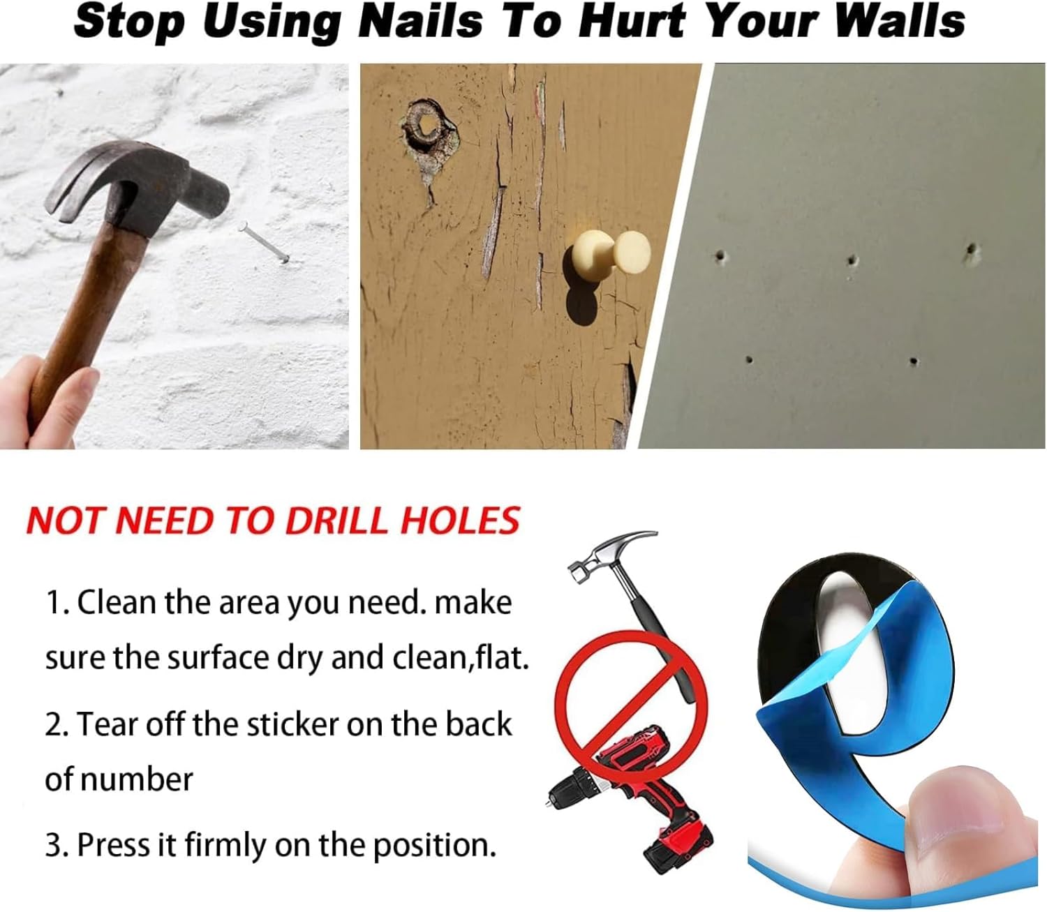 【Easy to Use】These adhesive numbers for mailbox or apartment door numbers are very easy to install, no screw and no drilling, sturdy and durable, just peel the sticker backing off the number and stick it where you need it. Before buying, please determine the size and quantity you need.
