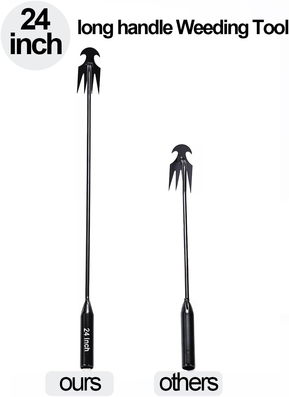 Practical Weed Pulling Tool: 24 inches lengthen weeder tool. It is the perfect length for a weed puller. Use electroplated and polished craftsmanship, the durable handle is more comfortable to hold, which is better than other weeder in the market.