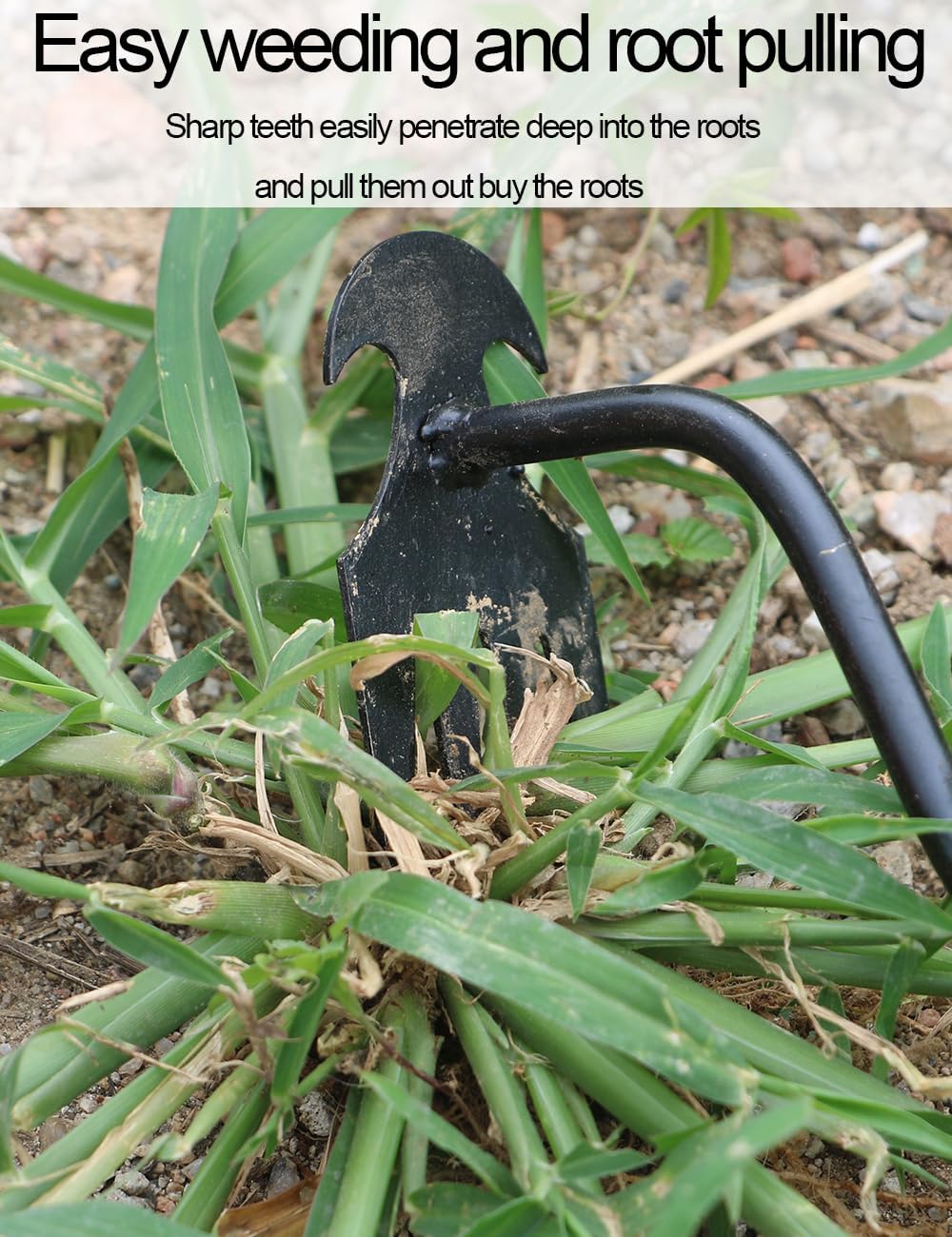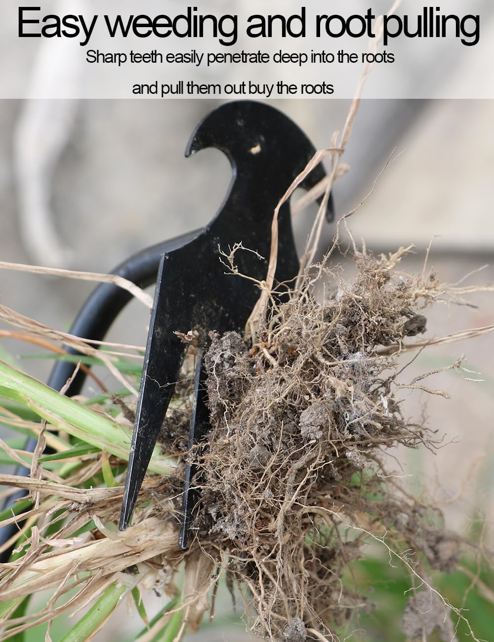 Durable Material: The four-tooth uprooting weeding tool is made of high-quality anti-rust manganese steel, with high hardness and durability. The 8 mm steel bars has high impact resistance and tensile strength, not easy to deform or break. The polished surface is non-stick.