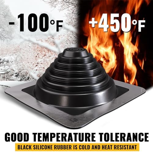 【GOOD TEMPERATURE TOLERANCE】High temp silicone rubber has good performance under -100 °f to 450 °f. Even meet high temperatures, heavy wet snow and pouring rain, metal roofing pipe flashing boot can be handled with ease.