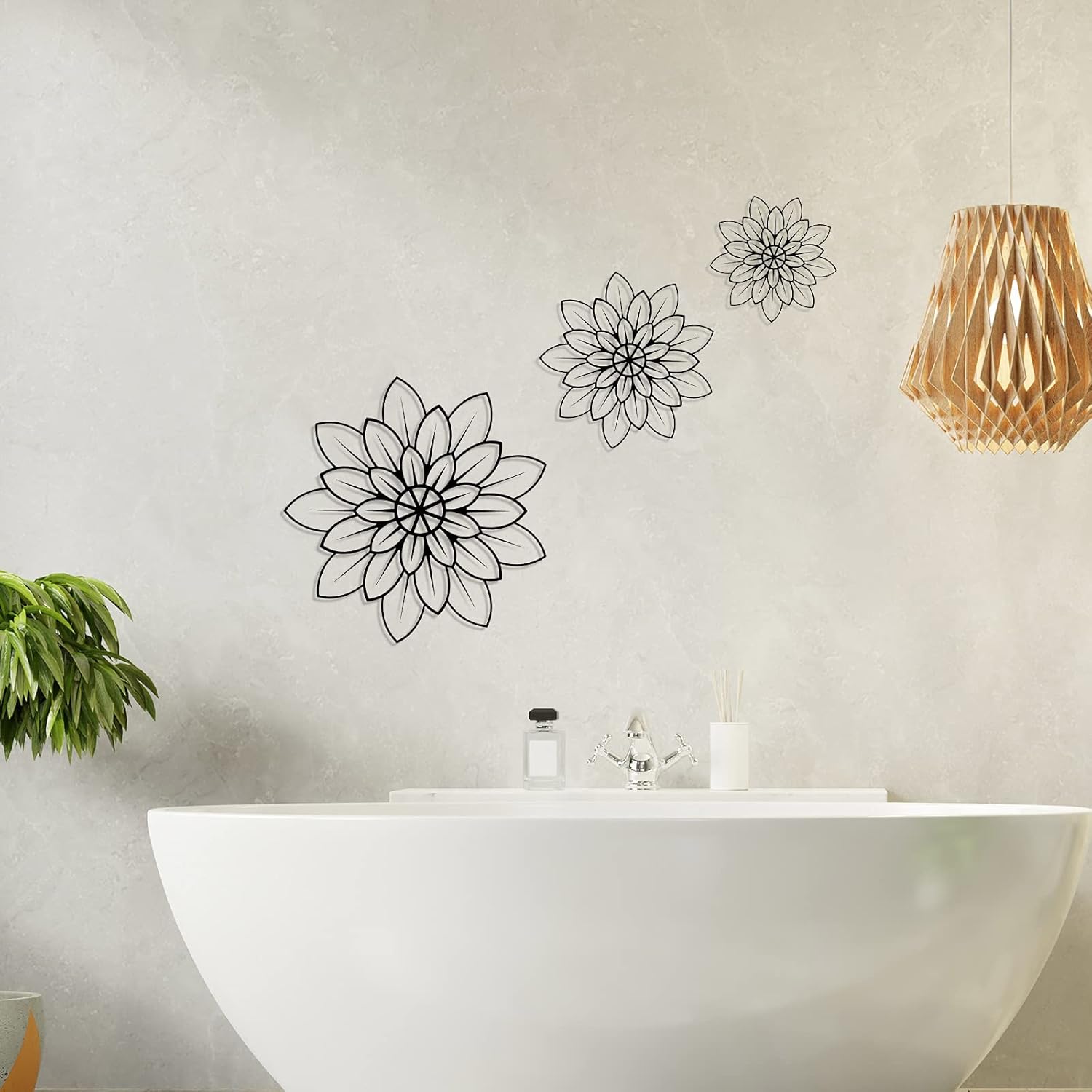 3 Pieces Metal Wall Art Metal Flowers Wall Decor Metal Wall Art Floral Home Decoration for Bedroom Living Room, Bathroom, Kitchen, Outdoor (Black)