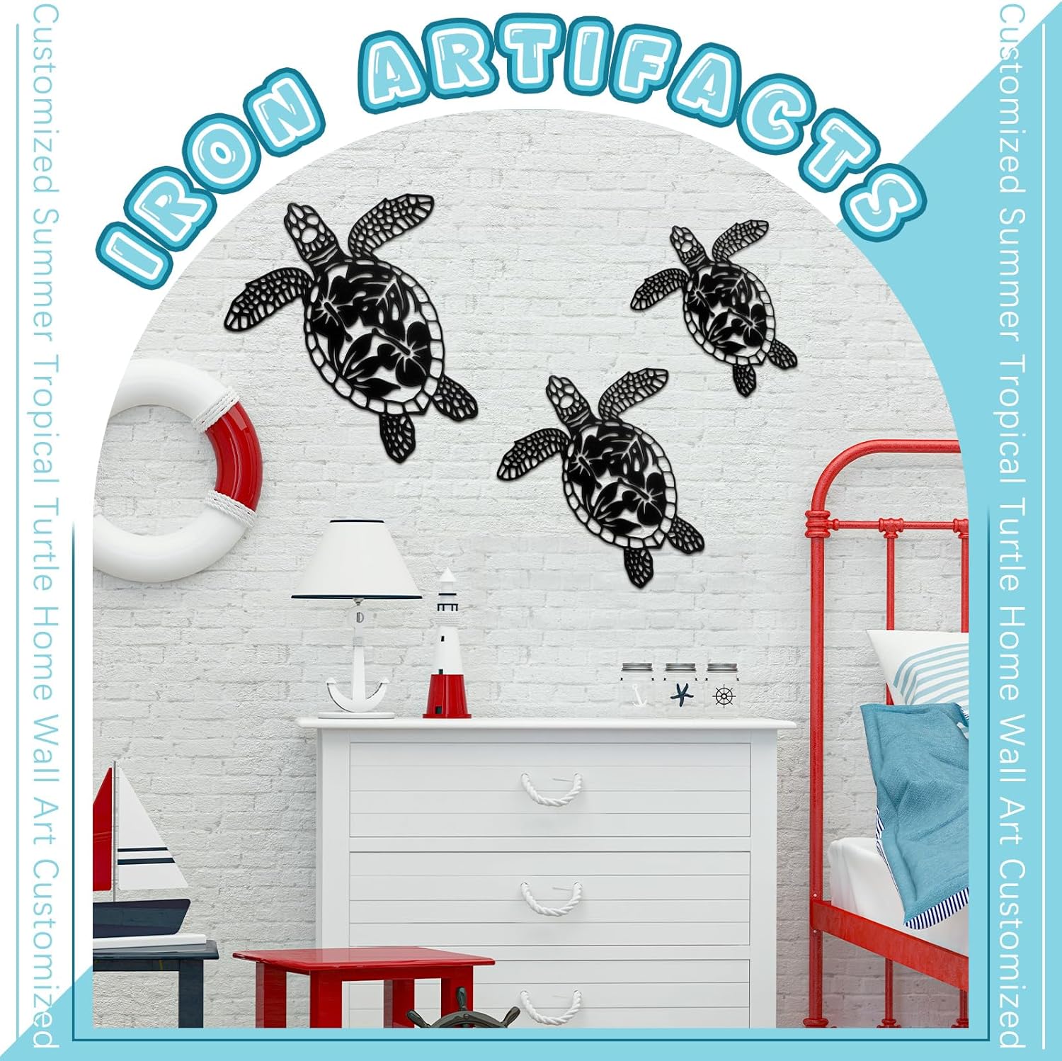 Complete Package to Liven up Your Space: the sea turtle wall art set takes the guessing out of home decoration; It includes 3 hanging sea turtle signs with screws for easy installation; Each metal surfboard wall decoration has predrilled holes on both sides, so you can easily hang it on the wall using the screws provided