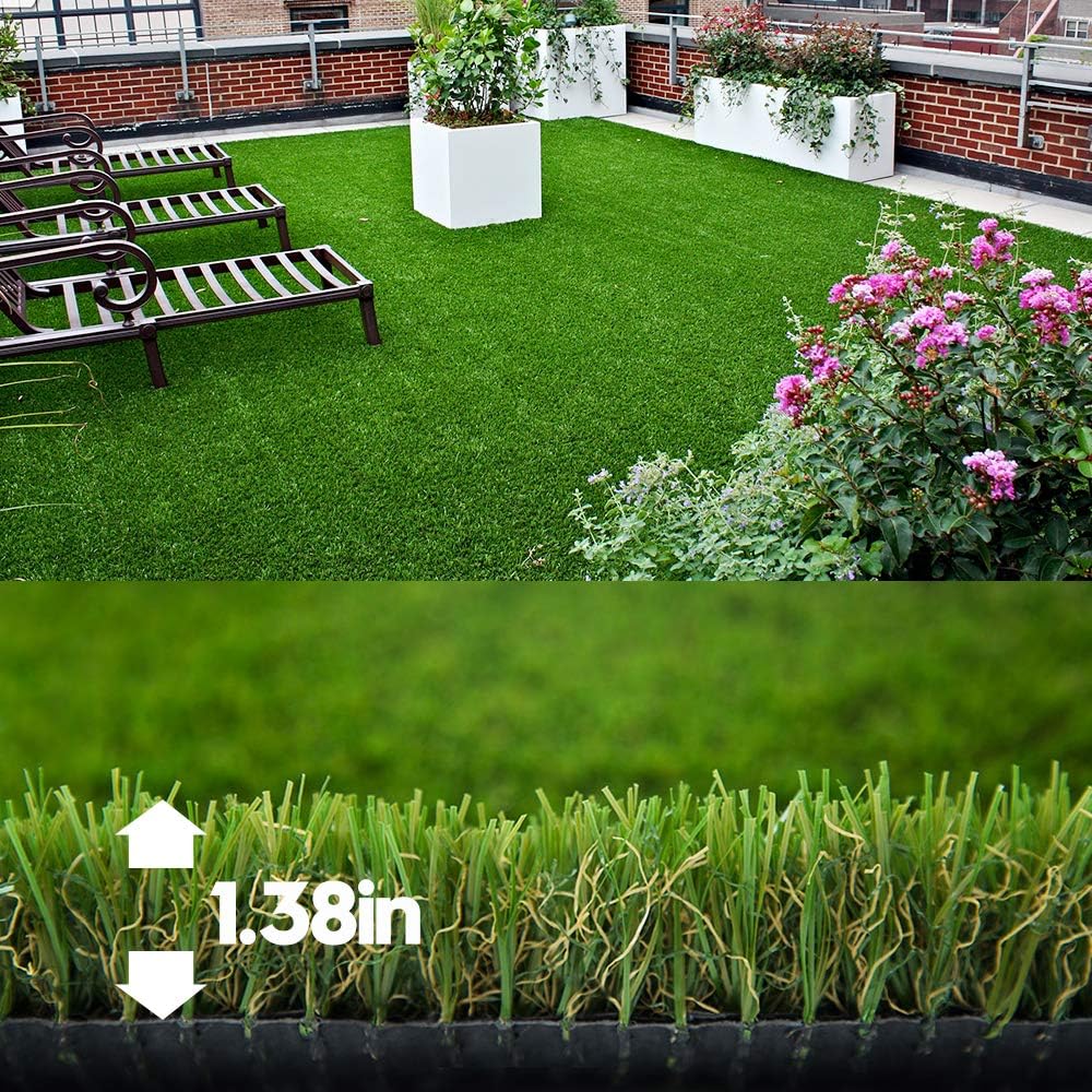 SIMPLE INSTALLATION:Laying out our grass is very simple, mark and dig out an area, lay out the base, roll out the turf, and seal the matter,Blade height is close to 1.7inch and perfect for that well-manicured look.