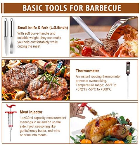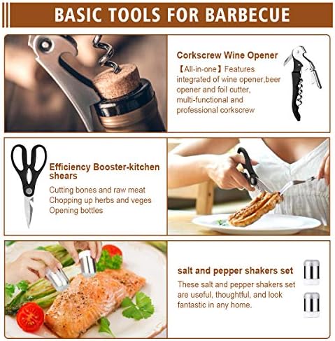 [Premium Quality Stainless Steel ]: Made by high quality stainless steel, our grilling accessories are built to last without rusting, bending, or cracking. These heavy duty grilling accessories with long handle are unbreakable, bpa free and dishwasher safe, ensuring longevity and easy cleaning.