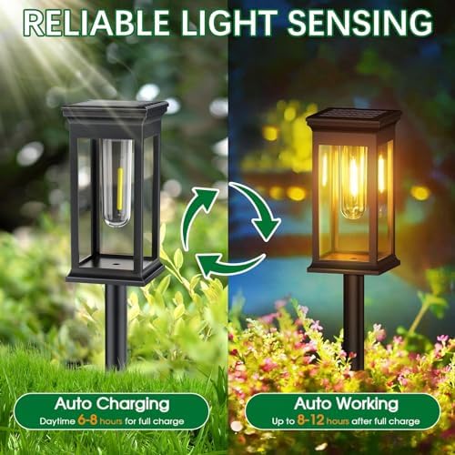 PERFECT GARDEN DECORATION:The pathway lights solar powered are easy to use, just need to be easily pushed into the ground to complete the installation, completely say goodbye to messy wires, driveway lights and provide you with a new lighting experience. solar outdoor lights decorative can create a warm and romantic atmosphere at night and better decorate your garden environment.