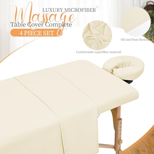 4 Sets Microfiber Massage Table Sheets Sets, Each Set Includes Massage Table Cover, Massage Fitted Sheet and Massage Face Rest Cover, Massage Sheets Sets for Beauty Salon and Home Spa (Beige)