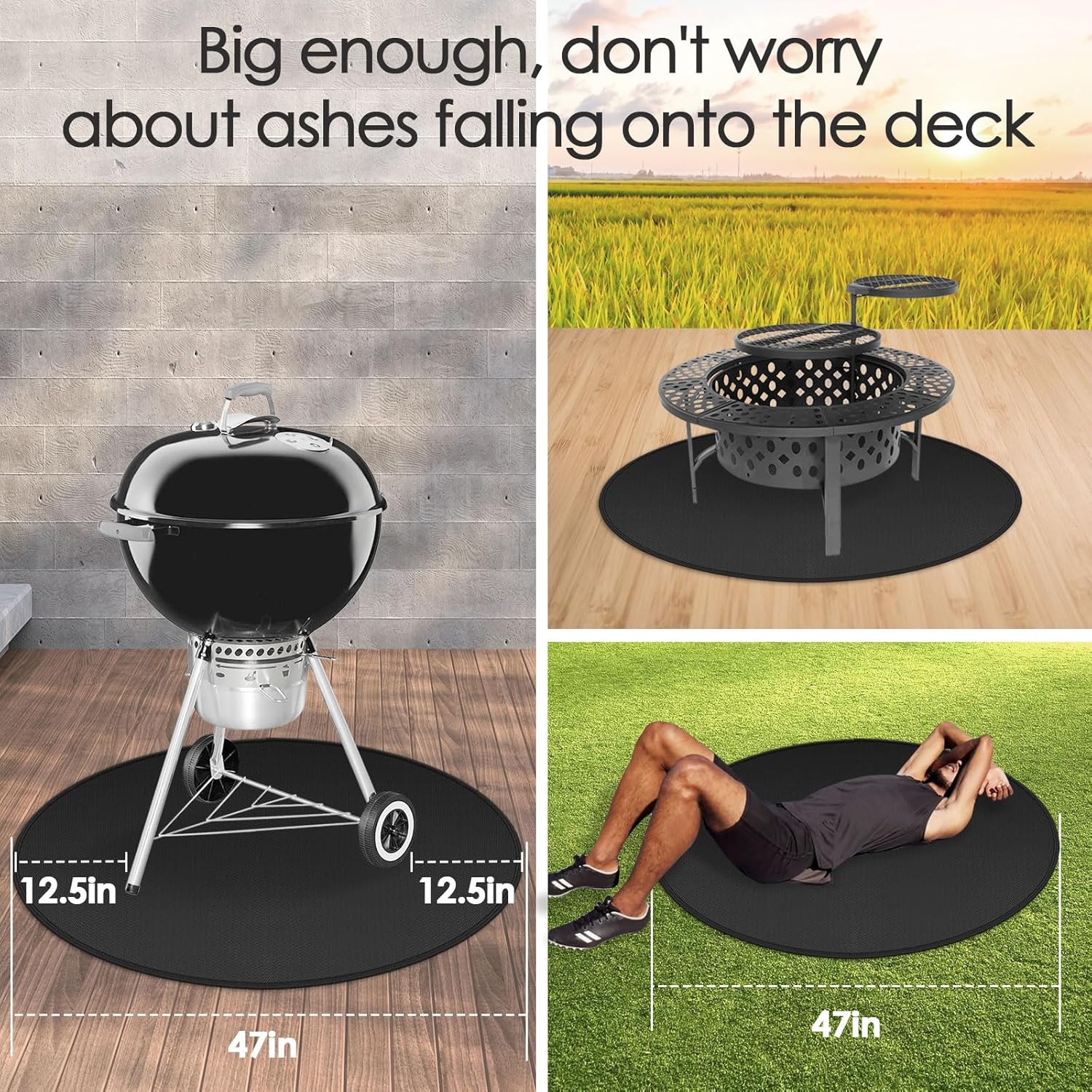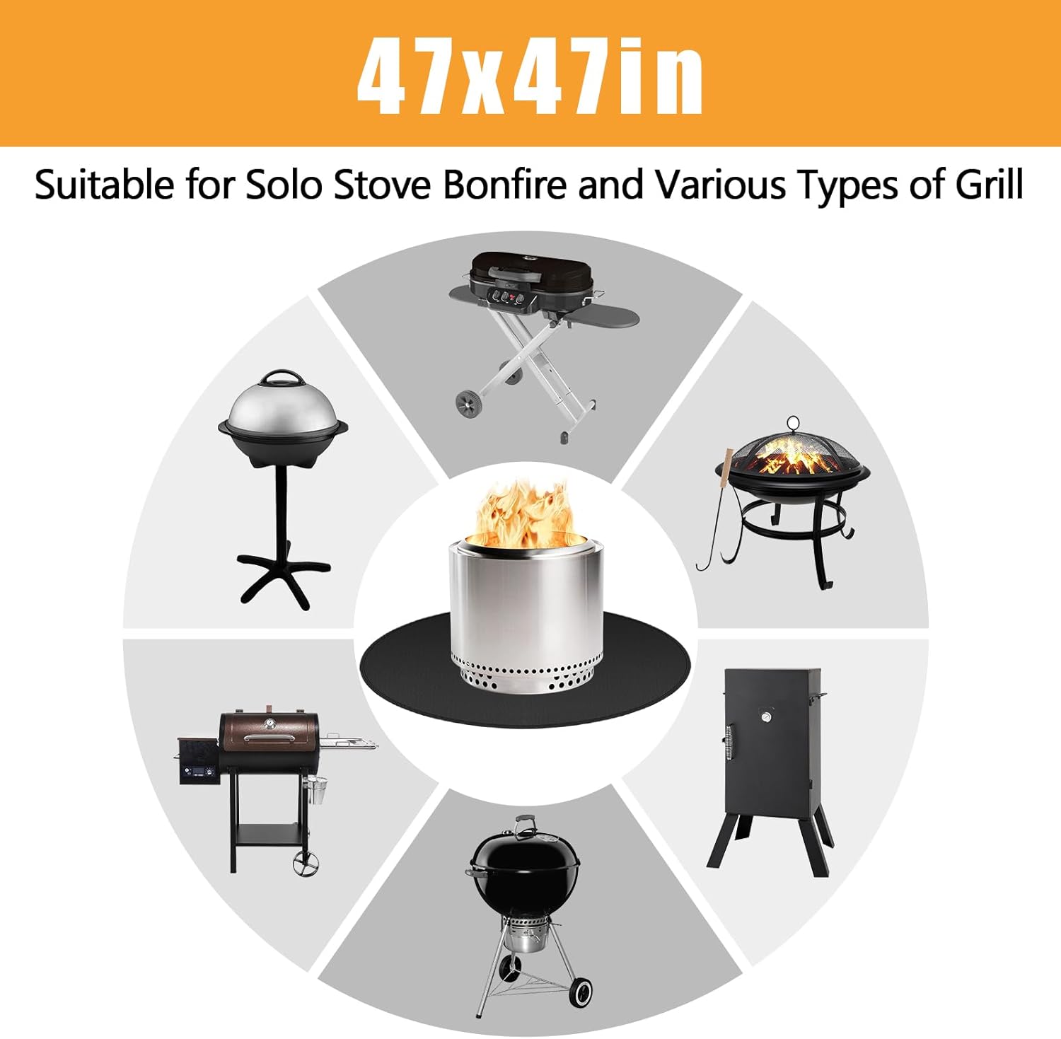 47in Round Fire Pit Mat for Solo Stove Bonfire,Grill Fireproof Stove Mat for Outdoor Grill Deck Protector,Circular Mat for Under Grill to Protect Deck Patio Grass,Fire Pit Solo Stove Accessories