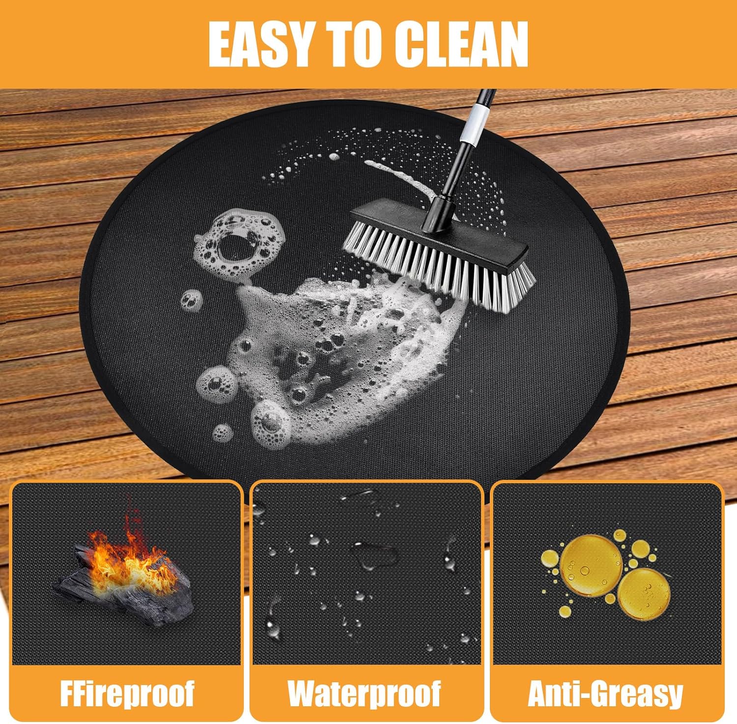 3 layers of heat resistant material, heat resistant up to 1800℉, protect your deck, patio from heat damage.Waterproof, Oilproof, collects splattered particles, ashes, easy to clean.