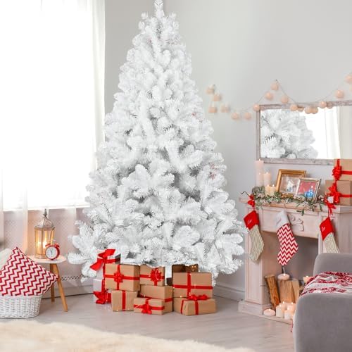 6ft White Christmas Tree, Premium PVC Fir Artificial Holiday Christmas Tree, Ideal for Home, Office, and Xmas Party Decoration, Metal Stand