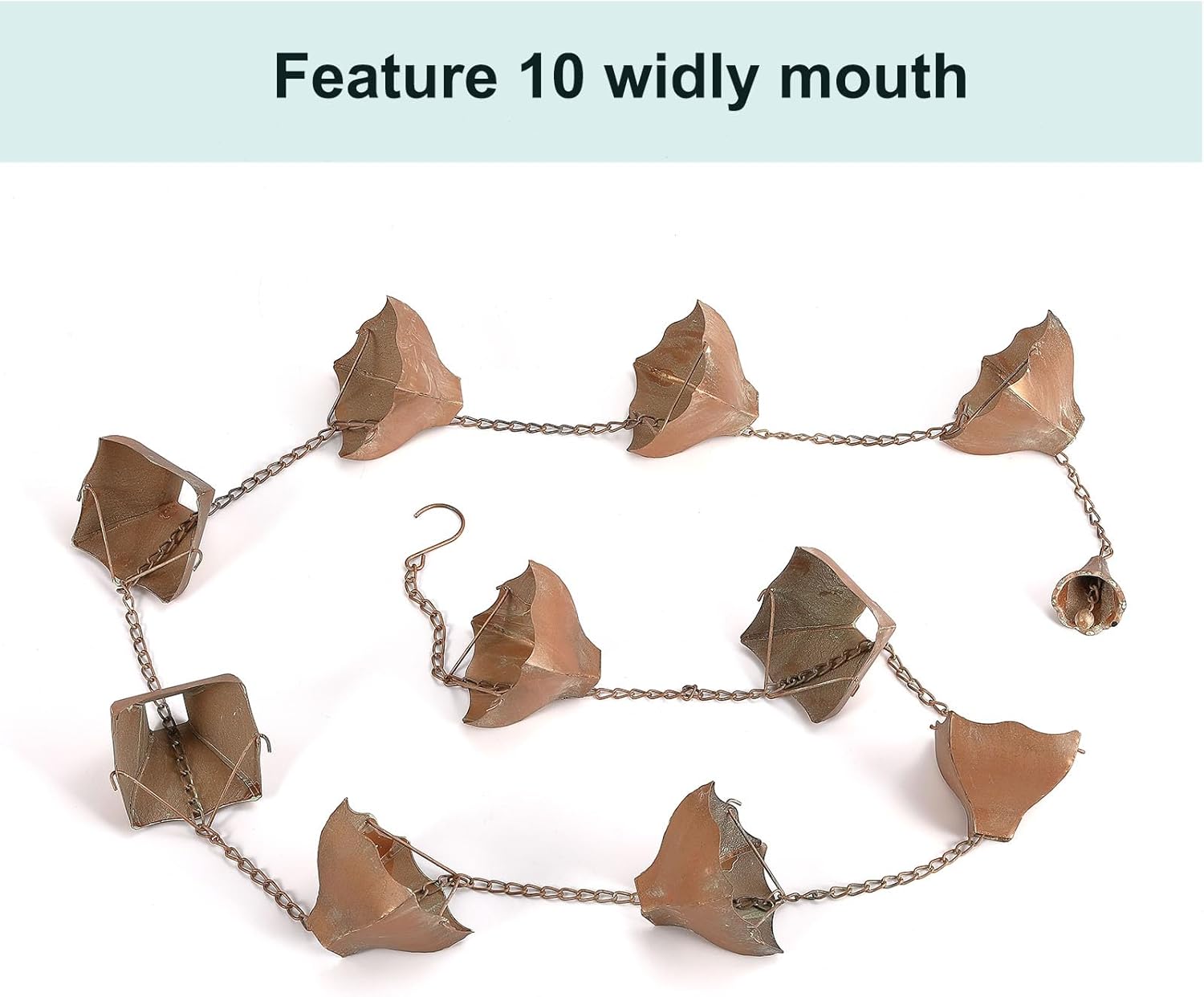 Featuring 10 beautifully tulip shaped cups, copper finish with verdigris accents, our rain chain adds a chic touch to your roof, awning, or shed