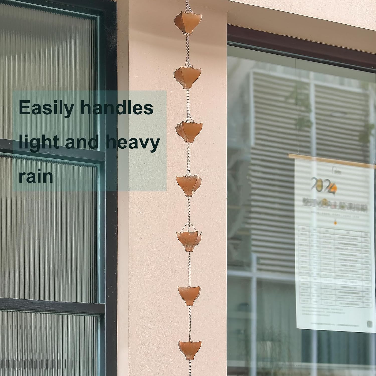This rain gutter chain is able to connect roof with ground, so rainwater can along the cups and chains flow to soil. Meanwhile, the cup will prevent water to splash because of the 3.9 in diameter.