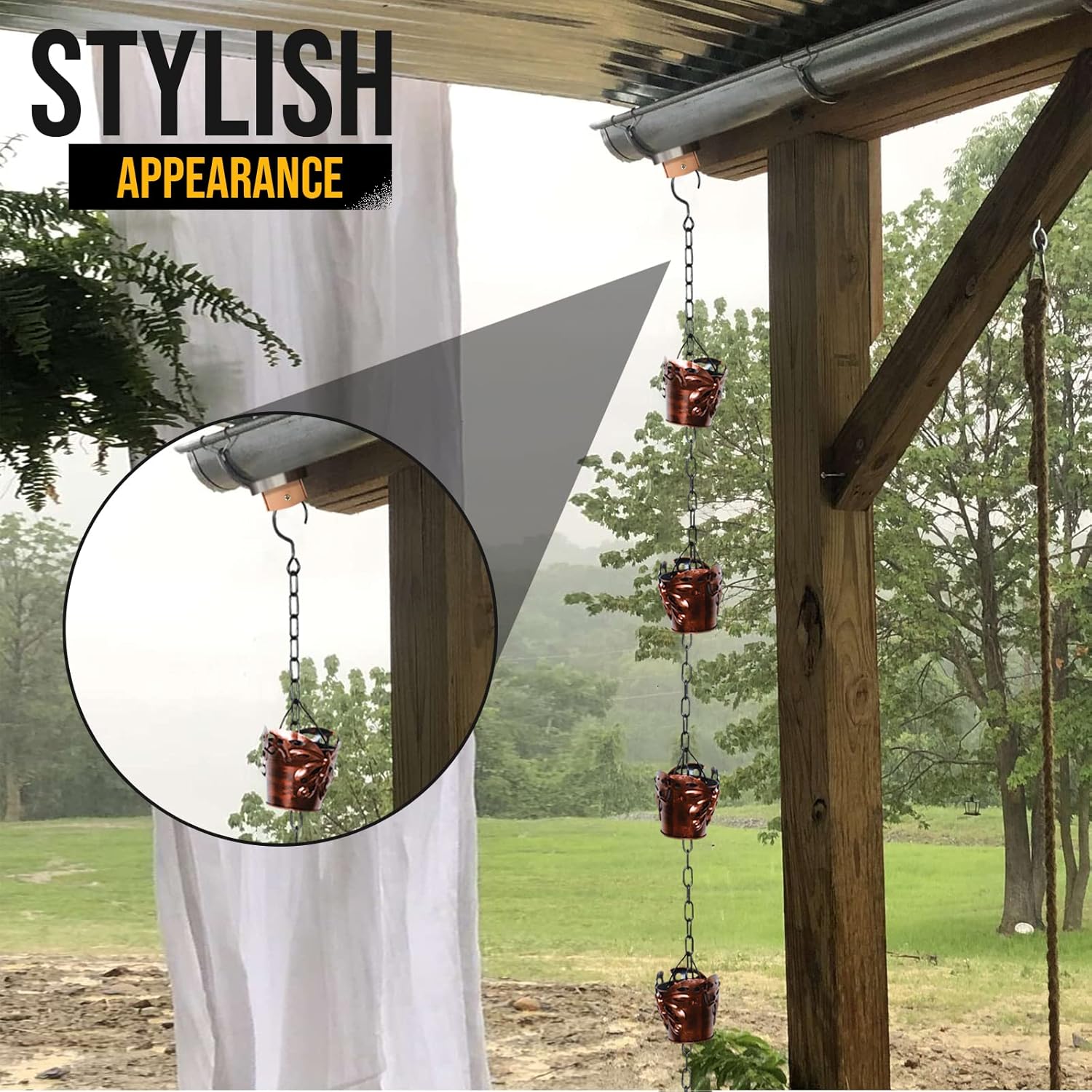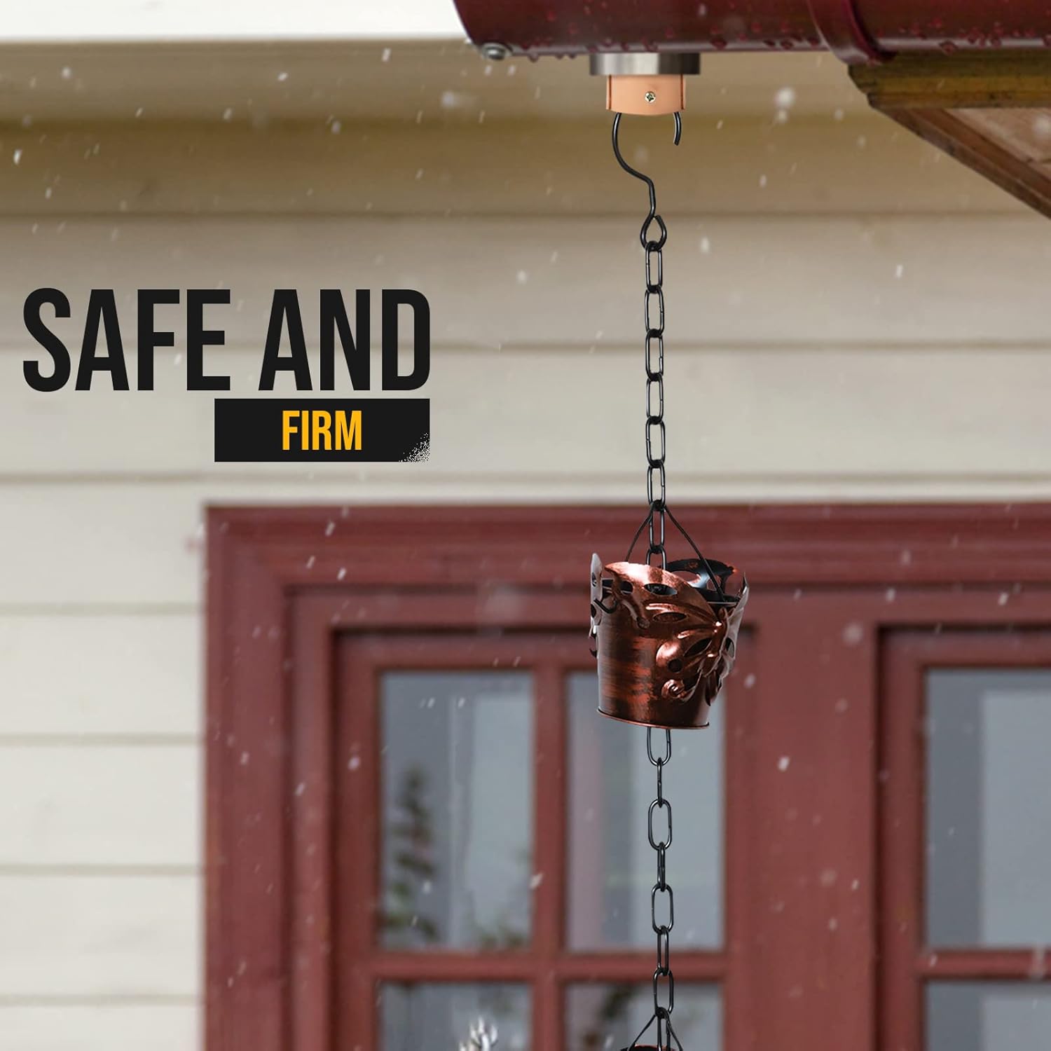 ☔【Easy Installation】: Enjoy your rain chains in no time! Simply remove your downspout, place the included clip in the opening, and connect the chain to the gutter clip. The rain chain is 8.8 feet long and easy to adjust.