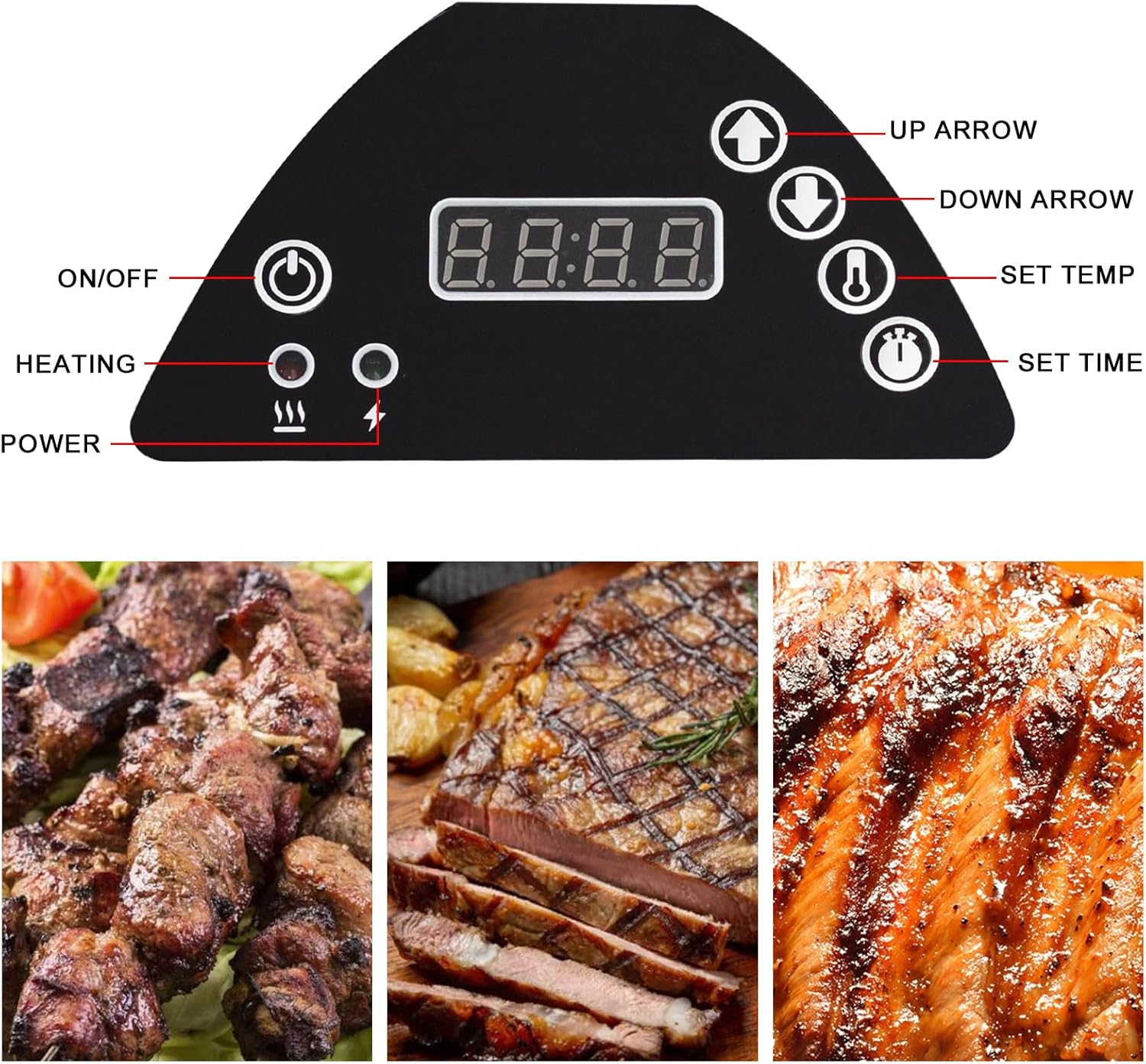 BBQ Digital thermostat with LED Digital Display, accurate display of the smoker grill internal temperature. High temperature resistance and long service life.