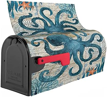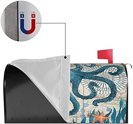 Abucaky Vintage Octopus Mailbox Cover Magnetic Ocean Starfish Nautical Map Waterproof Mailbox Wraps Post Letter Box Decor 21×18 in