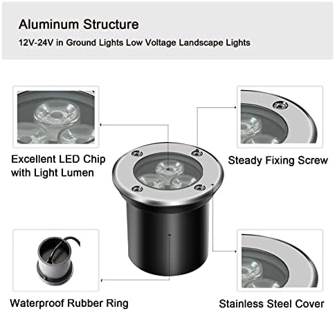 ✔【Low Voltage Landscape Lights】- Low voltage AC DC ground light, power: 3W; 6500k; Power cord length 30 cm; Maximum diameter of about 80 mm, installation depth: about 75 mm.