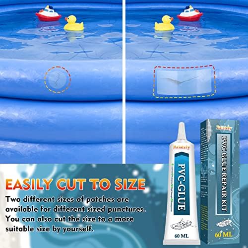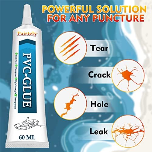 Perfect Repair: Paistely vinyl pool repair kit is an effective solution for any puncture, powerfully repairing any tear, crack, hole or puncture. Vinyl glue is able to form a strong, long-lasting bond between the pool repair patch and the repaired area so it will stand the test of time.