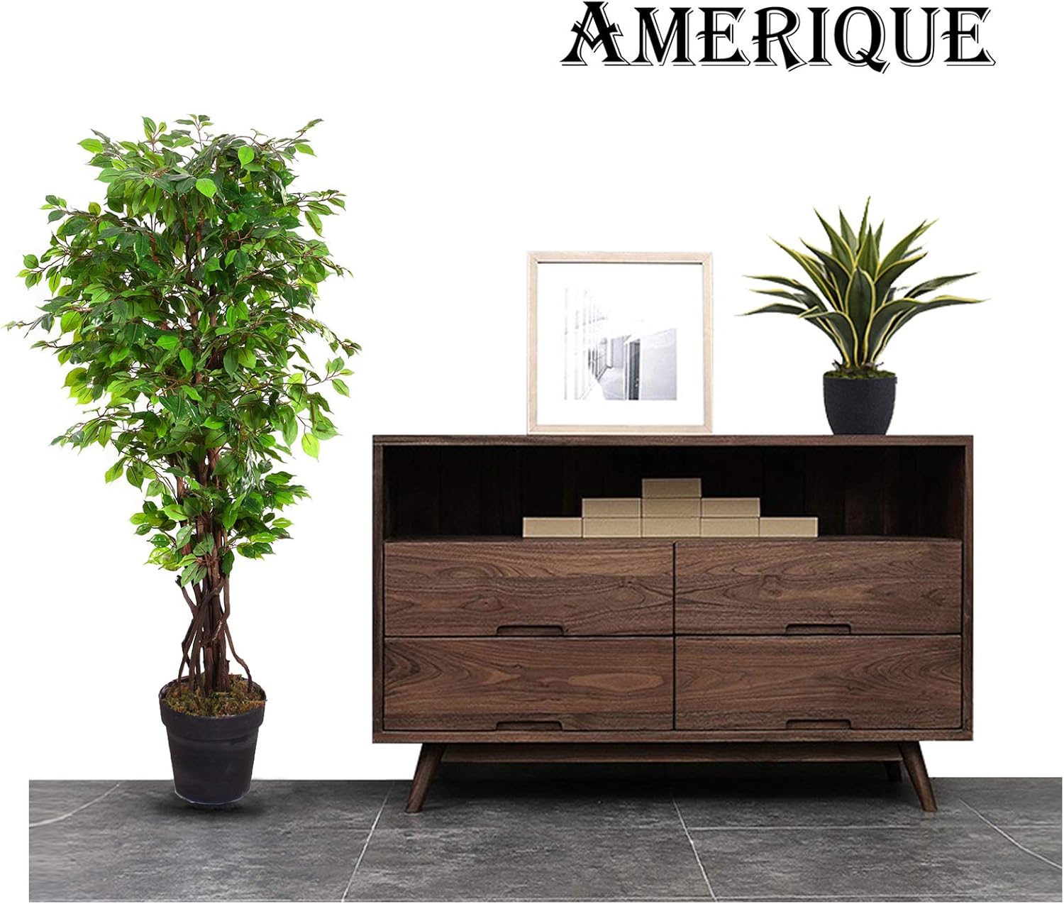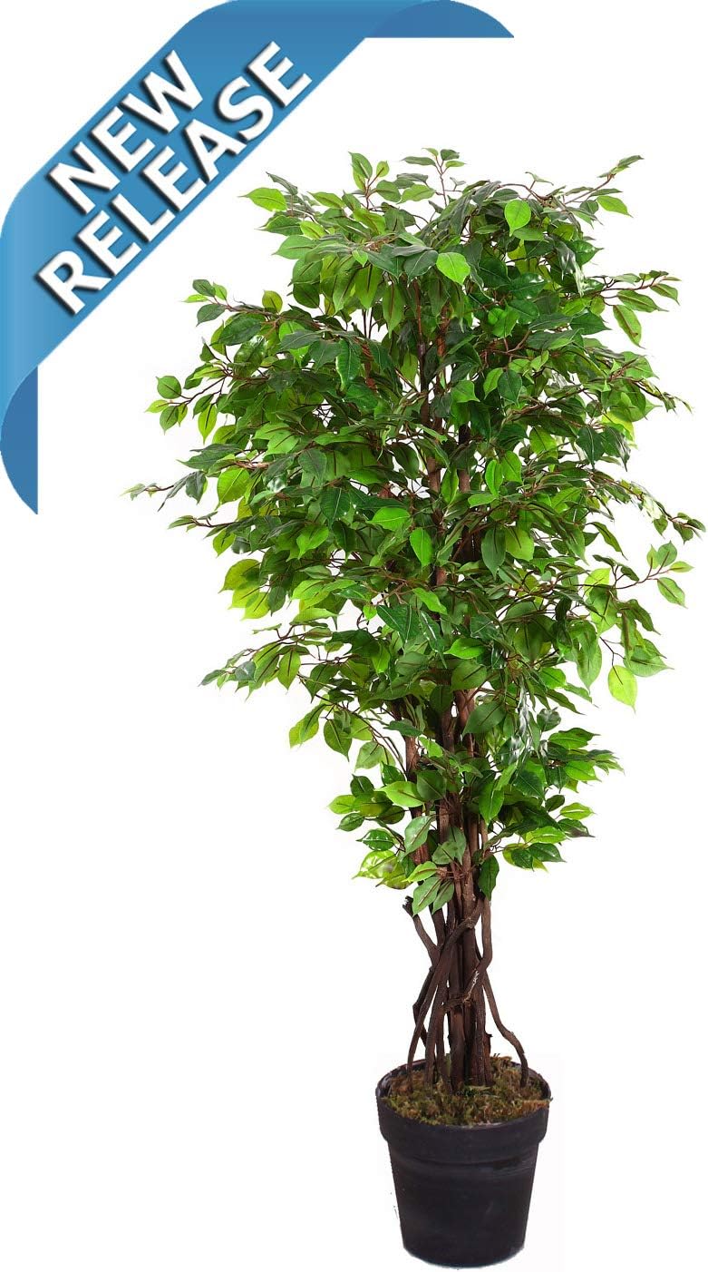 AMERIQUE Green Pair Gorgeous & Unique 6 Feet Ficus Capensia with Twisted Trunks Artificial Plant with Nursery Pot, UV Protection, Feel Real Technology, 6′, 2 Trees