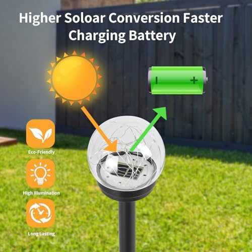 【SOLAR Globe Powered HOUSING】Made of ABS with classic plastic lens, the solar LED outdoor lights.just put it under the sunlight for chargingGives off a Colorful lights, perfect for the walkway, patio, garden, lawn, driveway or any other outdoor spot, making the night road more unique and beautiful.Package Includes: 4 x Solar Lights.