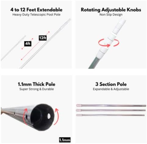 COMMERCIAL GRADE: Heavy Duty Deep Bag Net with Strong and Sturdy 4-12 Feet Telescopic Pole. Made to Work Day in, Day Out. Stop Wasting Money on Buying Individual Parts. Get The Pre Packaged Skimmer Set!