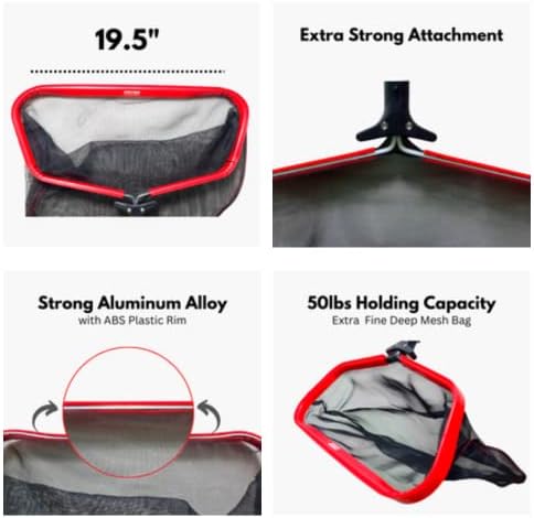 FINE MESH BAG: Ultrafine Mesh Material Ensures the Leaf Rake will Deal with All Types of Debris, Leaves, Sticks, Dirt and Other Items Floating in Your Swimming Pool. This Protects Your Pool Equipment & Accessories from Being Damaged and Overworked!