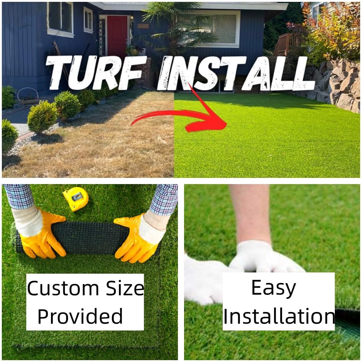 Thicker: Cestavie turf of upgraded and thickened new version with 1.5 inch pile height, high-density and ‘C’-shaped blades and curled base fibres give this grass an amazing feel under foot that easily bounces back into shape.More Durable: The fibres are made from stain-resistant and UV resistant properties which ensure no fading. PU coated backing faux grass provides better wear-resistant, weather-resistant and corrosion-resistant.Good Drainage: It has perforations in its backing, so you can be sure that puddles of pet urine don’t build up and water puddles are a figment of your past.Versatile Functionality: The fake grass can be used in Balcony, Patio, Pool Decks, Paths, Photo backdrops, Stair coverings, Table runners, Doormat, Backyard, Front lawns, Gym flooring, etc.Simple DIY: PU coated backing makes it lightweight, will be easier to install and cut, which means you can mix and match sizes to perfectly fit your lawn by cutting the synthetic turf into any pieces, and installation is fairly easy.