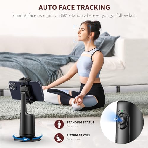 【No APP Required】With a built-in camera, the face tracking phone holder can track you intelligently, you don’t need to download any app or connect via Bluetooth.Very easy to use and better protect your privacy.Compatible with all video apps like Facebook, Instagram,Tik Tok,Youtube,Zoom, live streaming, photo & video shooting.