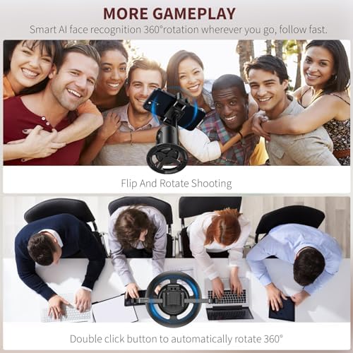 Auto Face Tracking Tripod 360° Rotation with 2 Cold Shoes&Remote,No App,Auto Tracking Phone Holder Mount,Moving Tripod for Live Streaming,Vlog,Shooting Video,Tiktok Rechargeable Battery