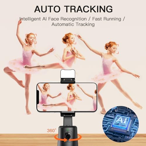 Auto Face Tracking Tripod, No App Required, 360° Rotation Face Body Phone Tracking Holder with Remote, Gesture Control, Smart Shooting Camera Mount for Vlog, TikTok, 3000mAh Rechargeable Battery