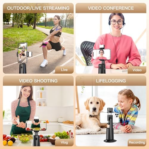 ♚【𝗦𝗲𝗮𝗺𝗹𝗲𝘀𝘀 𝗙𝗮𝗰𝗲 𝗧𝗿𝗮𝗰𝗸𝗶𝗻𝗴 & 𝗦𝗺𝗮𝗿𝘁 𝗦𝗵𝗼𝗼𝘁𝗶𝗻𝗴】This face tracking tripod employs an AI computing system that automatically recognizes and tracks your face or body, ensuring a steady 360° rotation following your movements. It liberates your hands for video calls and live streaming
