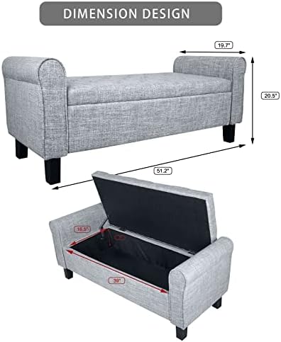 [HIDDEN STORAGE DESGNN]: This bench with storage for bedroom measures 51.2 x 19.7 x 20.5-inch,Storage size is 39 x 16.5 x 7 inches, providing more room to store and organize clothes, bedding sets, blankets, pillows, toys, and put away other household accessories and items.
