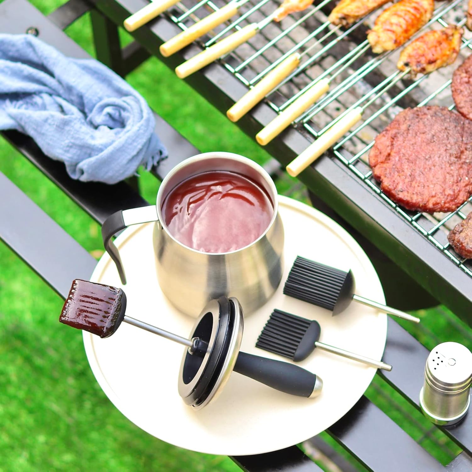 BBQ Basting Pot with 3 Basting Brushes Set,Airtight Stainless Steel Barbecue Sauce Pot,Silicone BBQ Brushes for Sauce,BBQ Grilling Gifts for Men Dad,BBQ Gadgets Grill Accessories,32oz Large Capacity