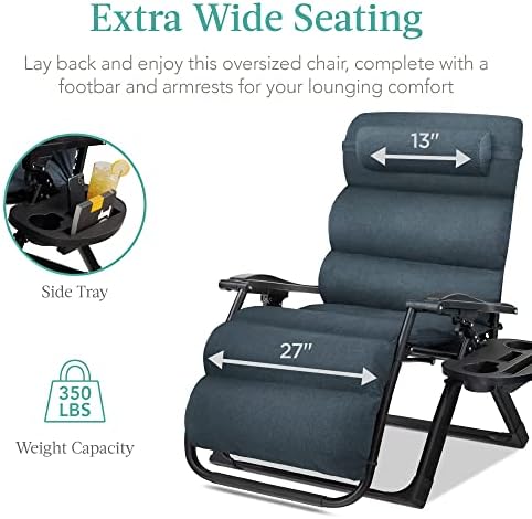 Best Choice Products Oversized Zero Gravity Chair, Folding Outdoor Patio Recliner, XL Anti Gravity Lounger w/Removable Cushion, Cup Holder, Side Tray, 350lb Capacity – Graphite Blue