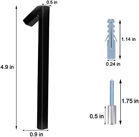 Black House Numbers – 5 Inch Modern Floating Address Numbers For Houses Rust Proof Zinc Alloy Easy To Install High Gloss Black Number 1