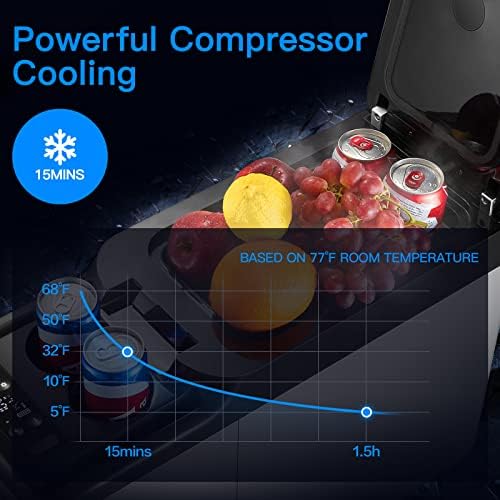❄ Car Protection Systerm: BODEGA Car Fridge 12v offer 3 different levels (H/M/L) protection function, effectively avoid exhausting the car power, so you don’t have to worry about running out of car power when using the 12 volt fridge. Adopt strong DC Compressor refrigeration technology, with high quality, long working life and fast cooling performance. Adjust the temperature of the portable fridge from 5℉-68℉ (-15℃-20℃) as your need.