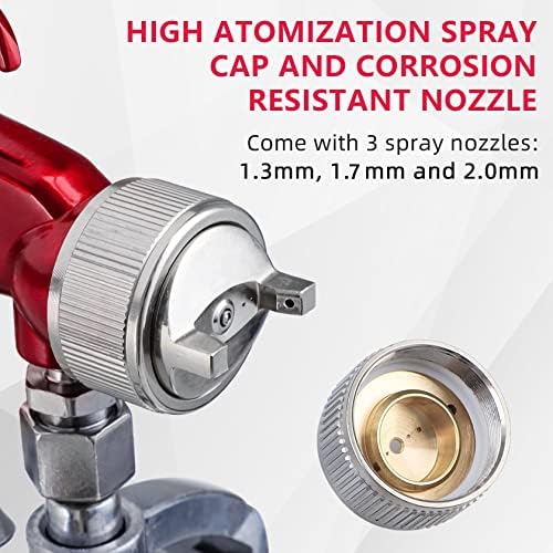 CarBole Suction Paint Sprayer Gun – 1000cc Capacity Cup with 1.3mm 1.7mm 2.0mm Nozzles Professional Air Spray System for Car Furniture Fence Wall (Red)