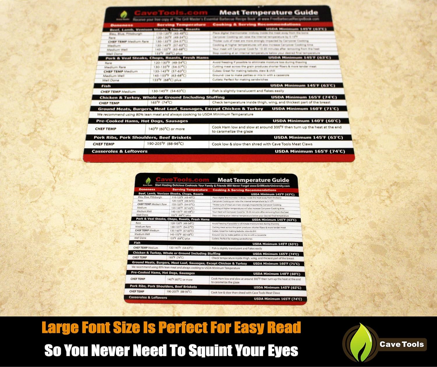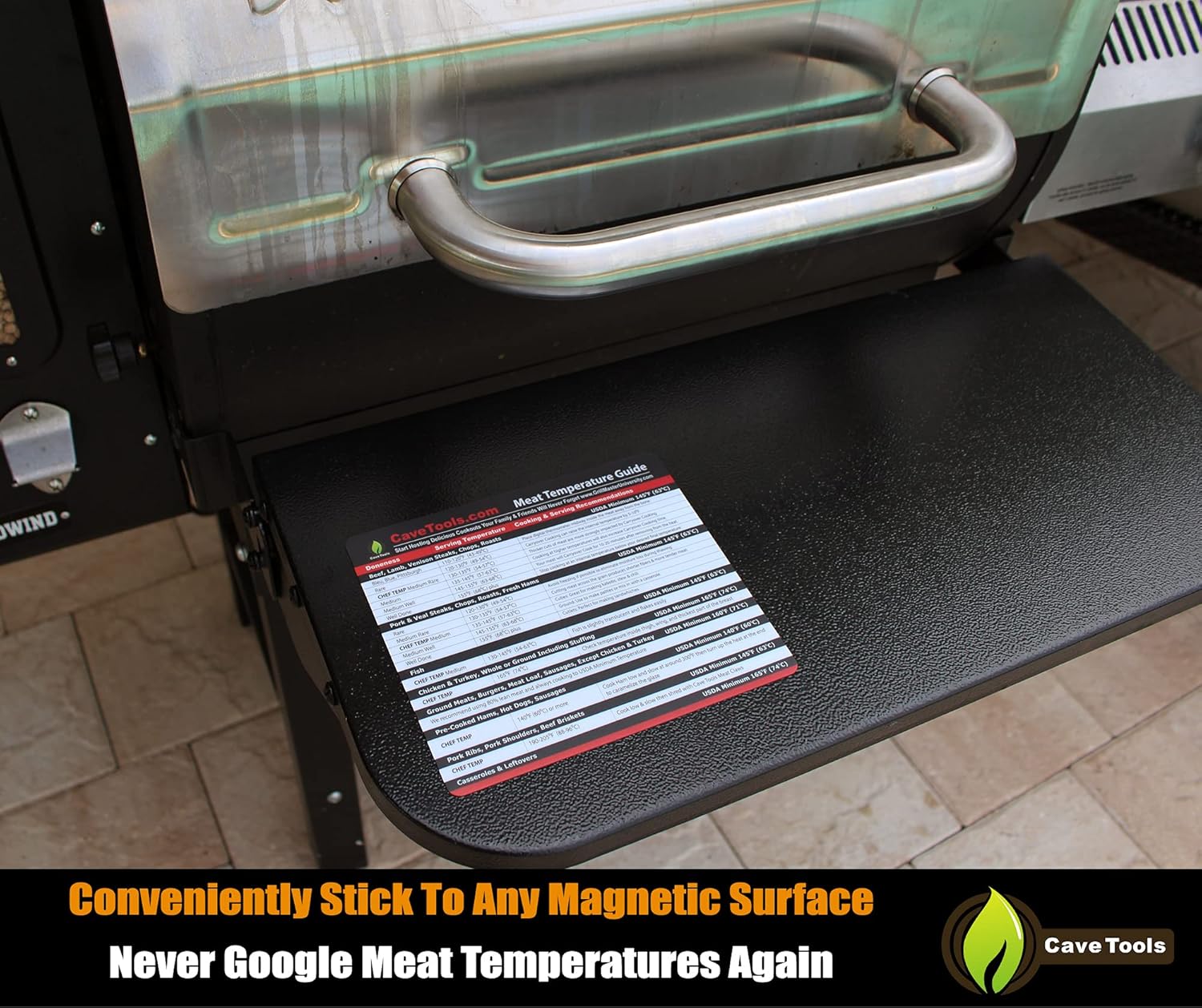 Cave Tools Meat Temperature Food Magnet Sheet for Internal Temperatures Cooking Strategies and Caryover Cook Times – Pitmaster BBQ Accessories for Smokers, Refrigerators and Grills – Small